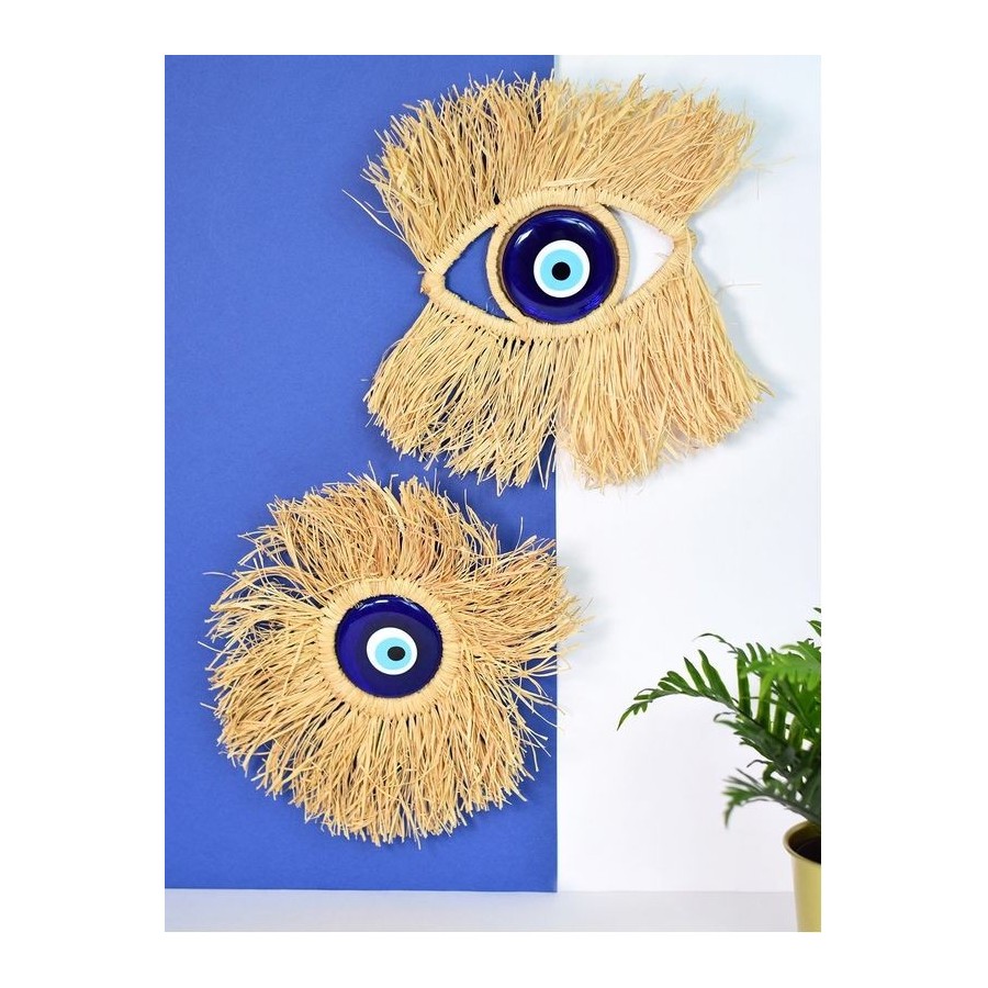 Suspension murale Raphia Oeil de Nazar Rond 25 cm