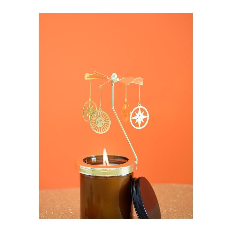 Laissez la joie, la gratitude et la bienveillance illuminer votre espace... Placé au-dessus de votre bougie, ce carrousel enchanteur se met en mouvement sous l'effet de la chaleur, diffusant une énergie vibrante dans votre intérieur. Ses amulettes, composées de soleils et d'étoiles, célèbrent l'énergie lumineuse sous toutes ses formes : l'épanouissement personnel, la joie de vivre et la vitalité inconditionnelle. Posez une intention lorsque vous allumez votre bougie, chaque mouvement de votre carrousel amplifiera vos vibrations et répandra autour de vous une aura rayonnante et inspirante. Une invitation à rayonner pleinement, à cultiver la joie et à laisser votre lumière illuminer le monde, au fil d'un mouvement hypnotique et réconfortant.
