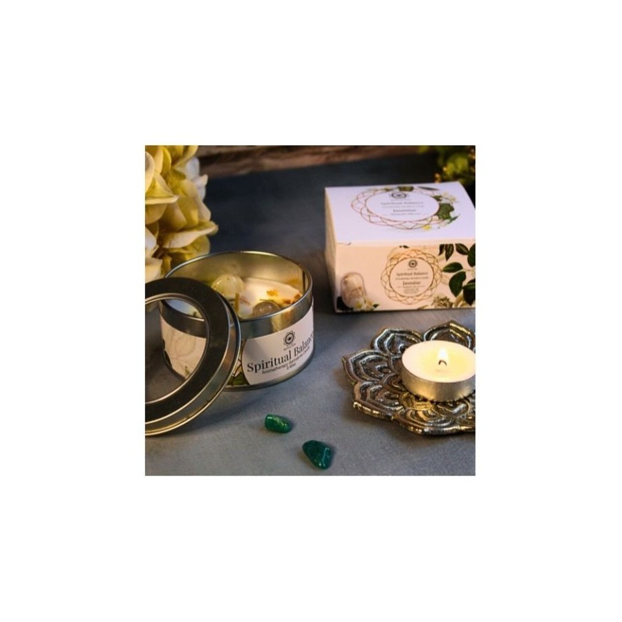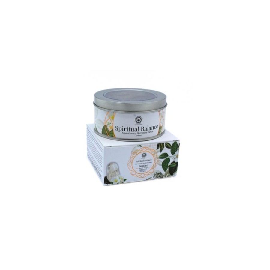 Bougie composée de pierres naturelles de cristal de roche et d'huile essentielle de jasmin. Poids : 70g